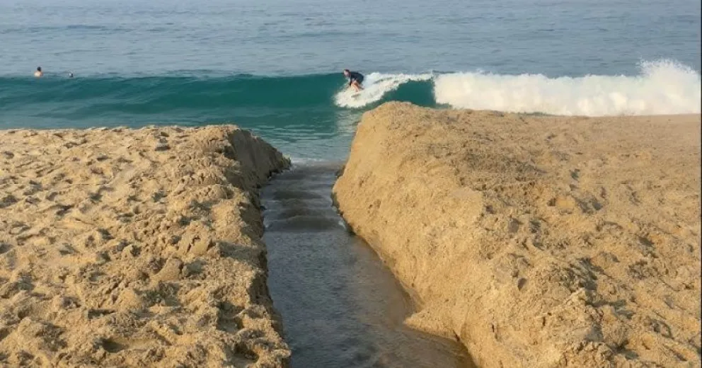 A medida que el agua comenzó a fluir, la corriente empezó a expandirse y profundizarse, erosionando rápidamente el canal originalmente excavado. En cuestión de horas, lo que había comenzado como un simple flujo controlado se transformó en una corriente impredecible y atraía la atención de todos, incluyendo a un grupo de surfistas que pronto aprovecharon la fuerza del agua que se dirigía hacia el mar para practicar su deporte.
