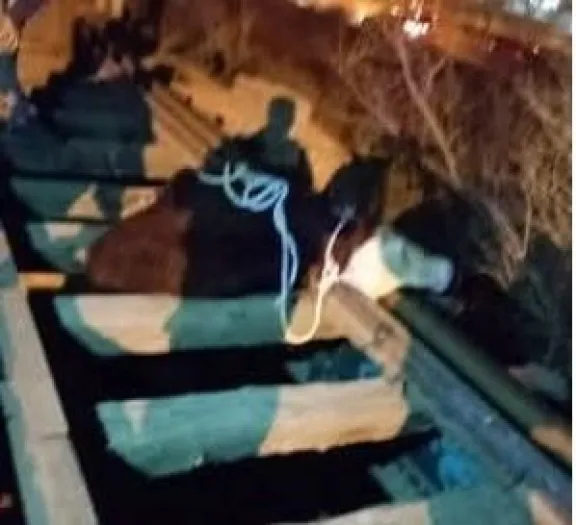 Aparentemente el vacuno cayó en un guardaganado del tendido de vías y murió al no poder levantarse, ni tampoco pudo a ser rescatado por las personas que llegaron hasta el lugar.