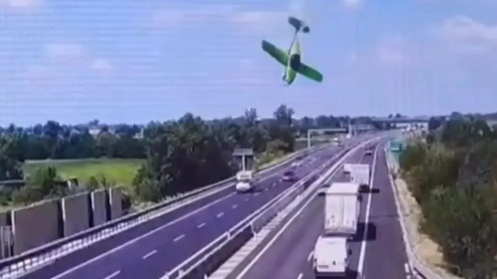 Terribles imágenes de una avioneta al estrellarse sobre una autopista en Italia