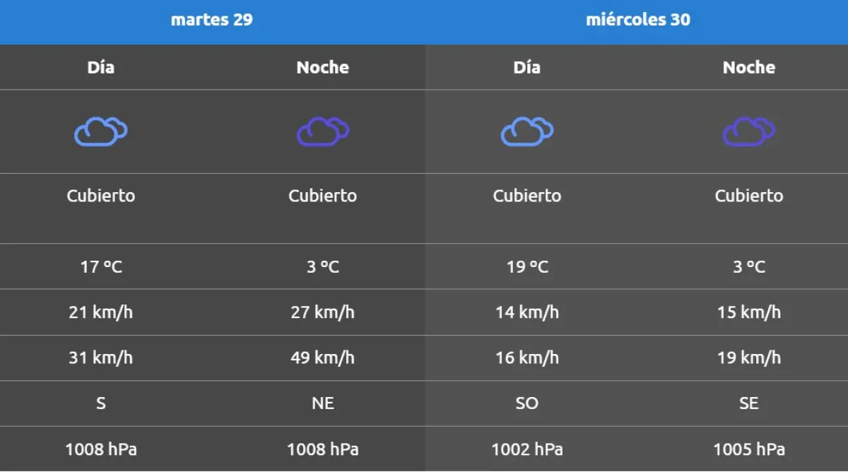 La Autoridad Interjurisdiccional de Cuencas emitió su pronóstico para este martes 29 de julio y el extendido de la semana. Para hoy se espera una mínima de 3° C y una máxima de 17° C.