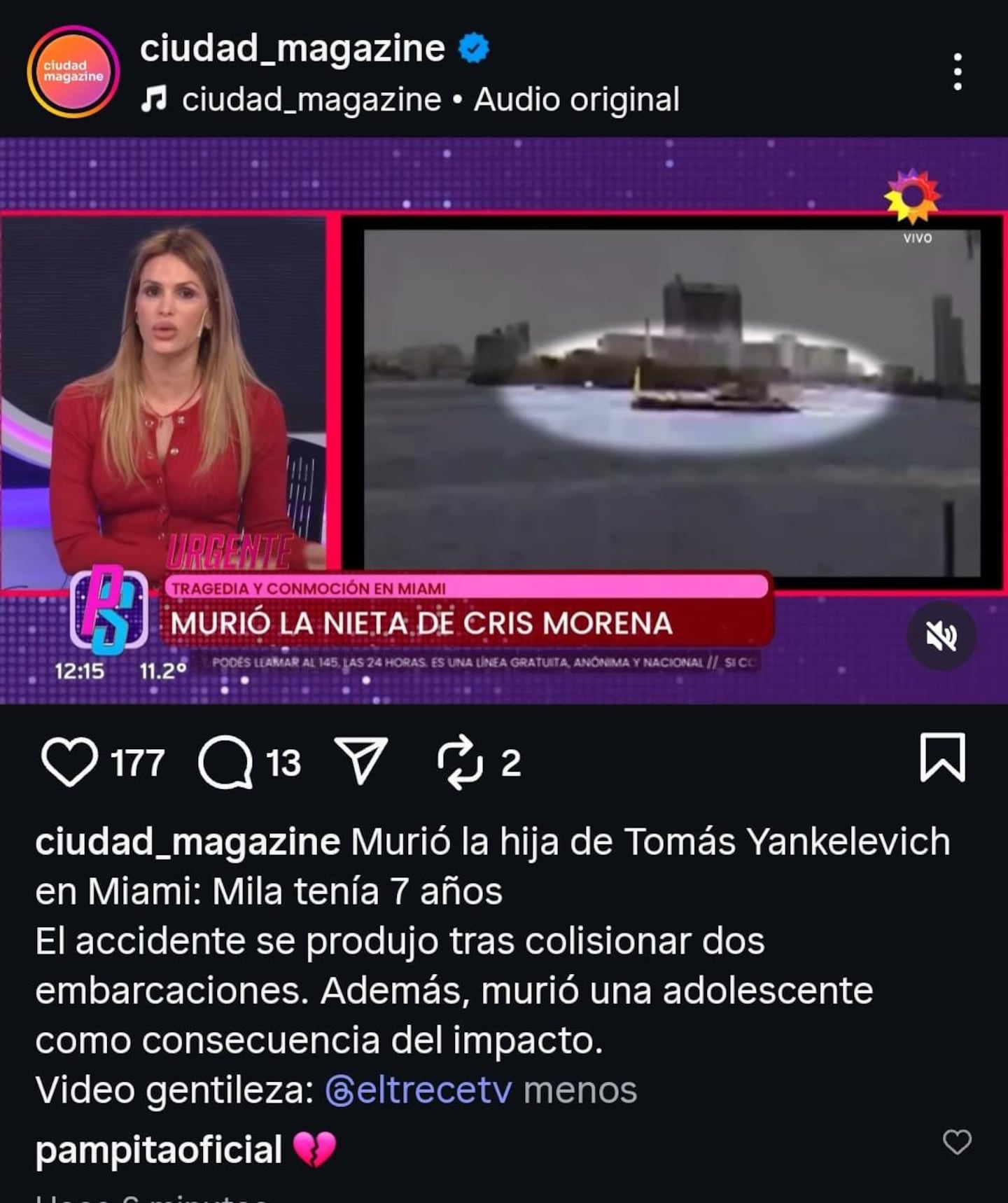 La nena, de apenas 7 años, falleció en Miami tras un accidente náutico, y el dolor por su partida atravesó a miles de personas que, sin conocerla, sintieron la necesidad de acompañar a su familia con mensajes llenos de amor y respeto.