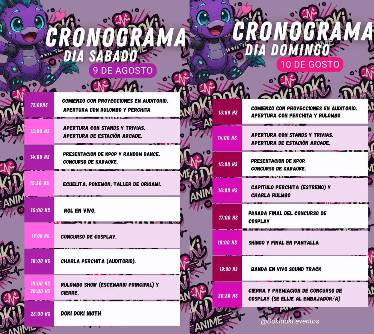Una de las novedades que se mantiene este año es la Doki Doki Night, una fiesta temática que se realiza el sábado por la noche, desde las 23 hasta las 3 de la mañana. Es una propuesta exclusiva para mayores de 18 años, con música, baile, juegos y sorpresas.
