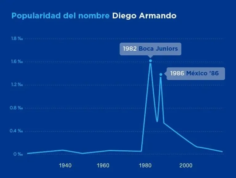No todos los nombres se popularizan de manera constante. Algunos explotan en momentos muy específicos, como respuesta emocional a hechos históricos, ídolos o acontecimientos masivos. Veamos cuatro casos destacados, según los datos de nombres.datos.gob.ar: