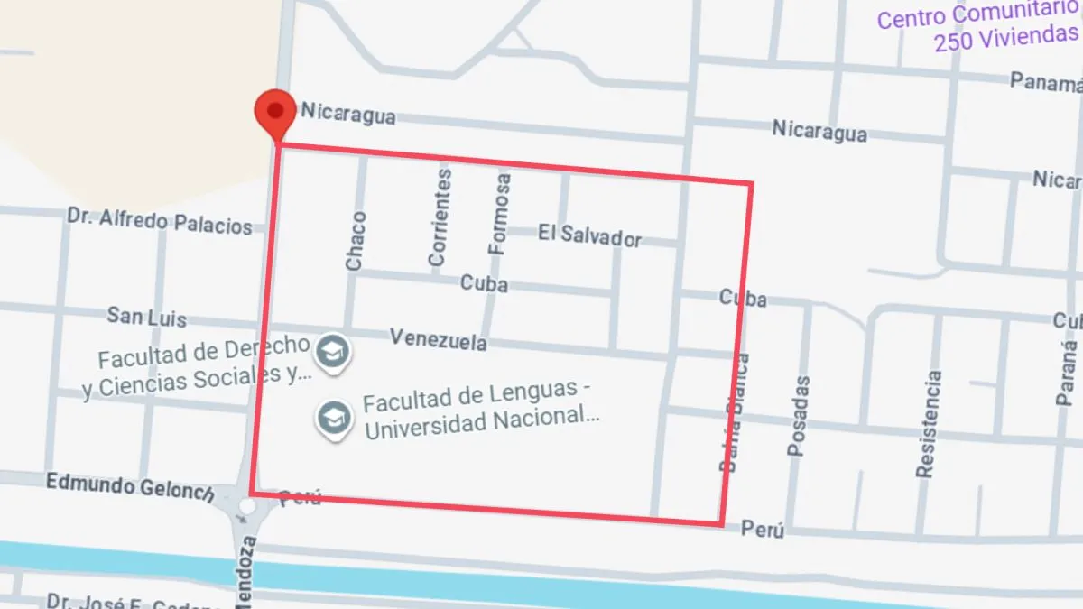 La suspensión del servicio será entre las 10:00 a 14:30 en el sector comprendido por las calles Mendoza, Bahía Blanca, Guatemala y Perú, afectando a instituciones como la Facultad de Derecho y Ciencias Sociales.