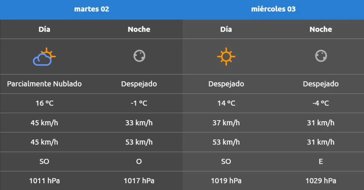 Se espera que el miércoles la mínima sea de -4°, con ráfagas de viento que podrían alcanzar los 53 km/h.