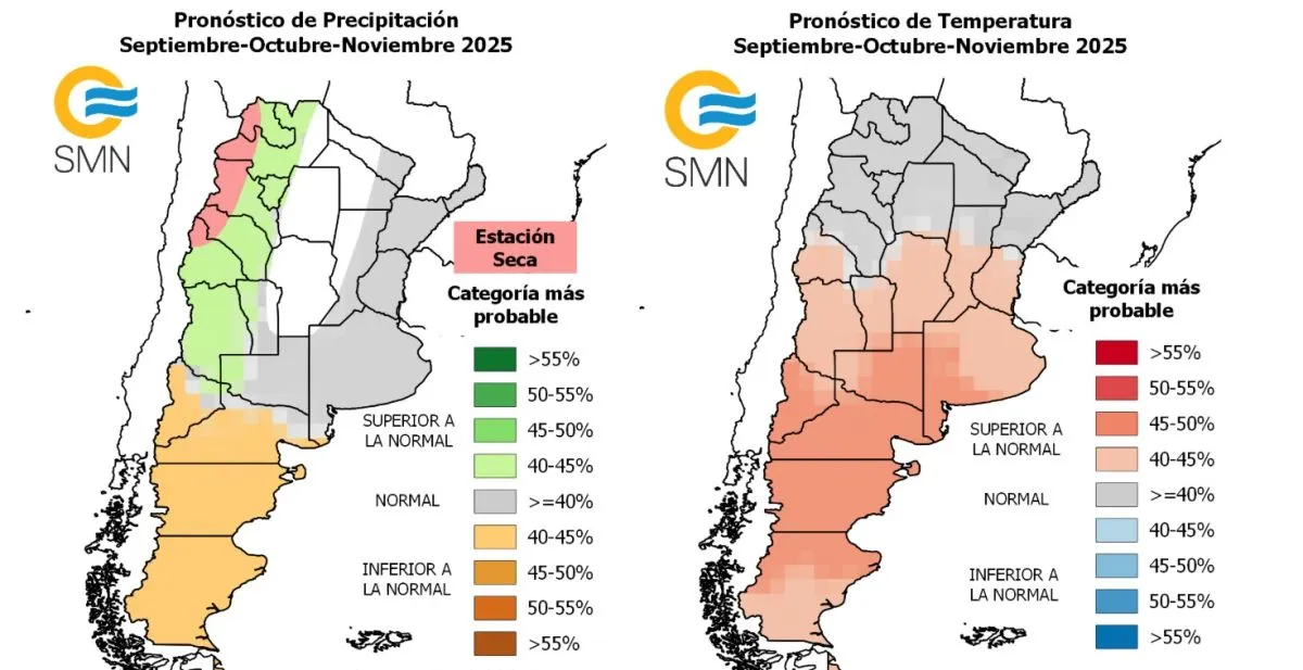 El Servicio Meteorológico Nacional (SMN) difundió su pronóstico climático trimestral para septiembre, octubre y noviembre, y en el norte de la Patagonia, donde se ubica el Alto Valle, se prevé una tendencia a temperaturas superiores a lo normal y precipitaciones entre normales e inferiores a lo habitual.