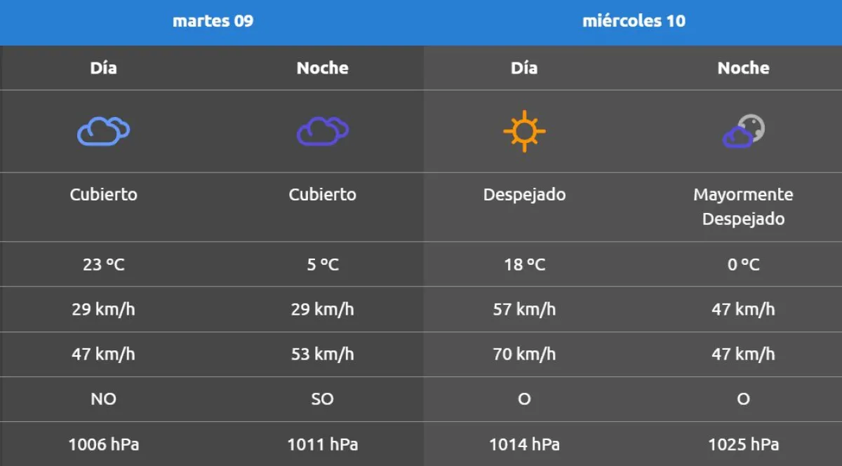 Durante la jornada del martes se espera que el cielo se mantenga cubierto, con algunas ráfagas de viento y con temperaturas en ascenso.
