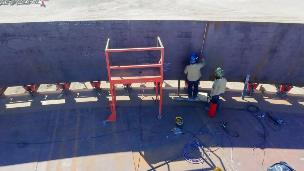 La técnica elimina la necesidad de soldaduras temporales y utiliza cabinas climatizadas para los equipos, lo que mejora las condiciones laborales y el control de calidad. Actualmente, el primer tanque ya conformó su primer anillo y comenzó la soldadura del segundo, mientras que el segundo tanque finaliza su primera etapa. Además, se inició el montaje del tanque de agua para protección contra incendios.