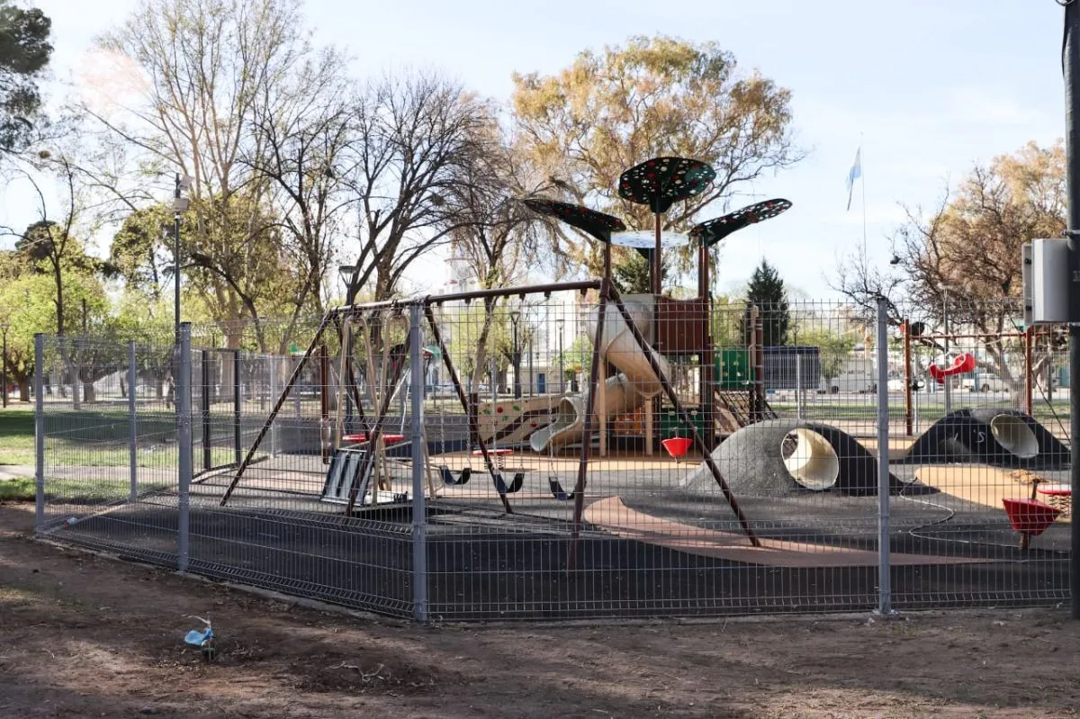 El espacio está ubicado en Plaza San Martín y tendrá juegos inclusivos inspirados en la manzana, símbolo productivo y cultural del Alto Valle.