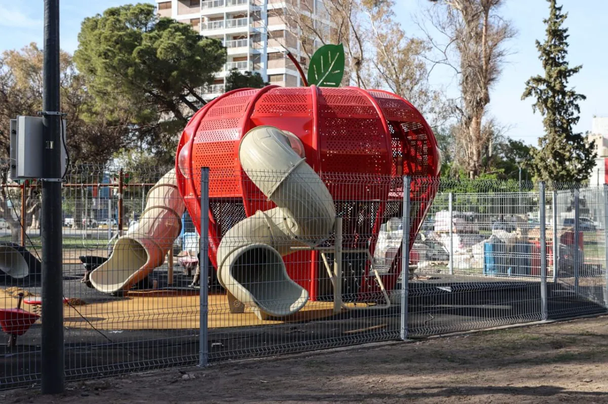 En paralelo, desde el Municipio informaron que avanzan a gran ritmo con la obra que busca modernizar un área clave de recreación con un diseño innovador e inclusivo. En estos días se lleva adelante la instalación de una platea de caucho continuo de 385 metros cuadrados, que ofrece mayor seguridad y accesibilidad, y el montaje de los nuevos juegos temáticos inspirados en la manzana, símbolo cultural y productivo del Alto Valle.