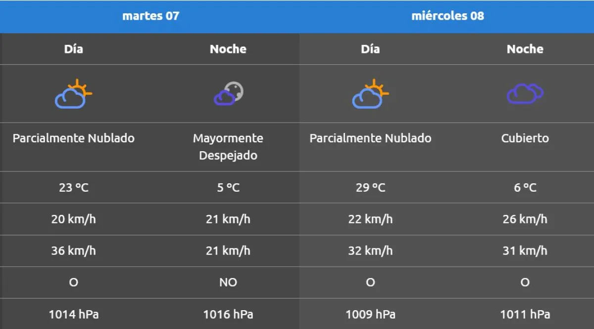 Aunque este martes continúa la presencia de aire frío con períodos de viento del oeste en toda la región, a partir del miércoles ingresa aire cálido del norte haciendo que la máxima ascienda hasta alcanzar los 29°.