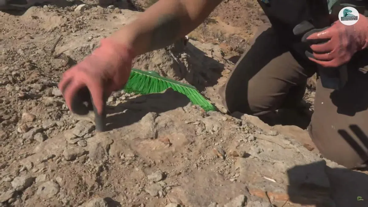 “Vimos una secuencia de costillas que están todavía en la roca, así que hoy realizamos excavaciones para poder sacarlas”, explicaron los investigadores durante la transmisión.