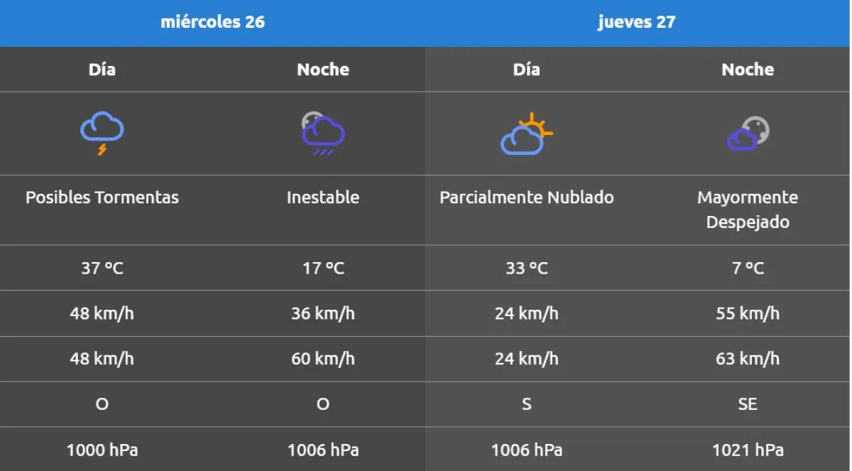 Este miércoles continuarán los períodos cálidos con temperaturas de casi 40 grados para el Alto Valle. Sin embargo, durante todo el día se pronostican desde leves lloviznas hasta tormentas eléctricas.