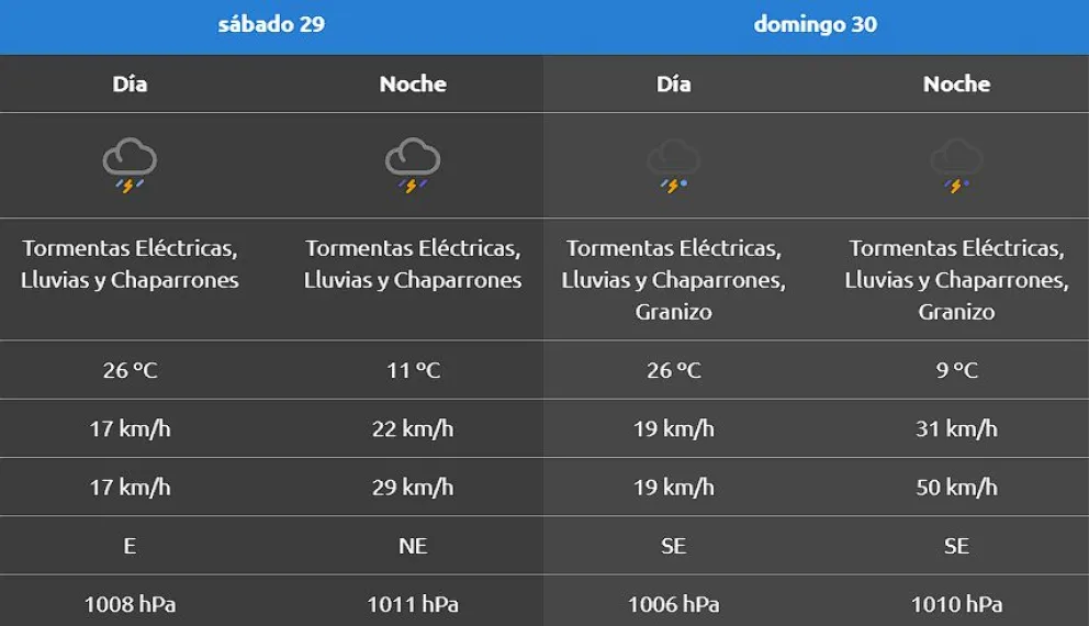 Clima: llega un domingo con probabilidad de tormentas eléctricas y granizo