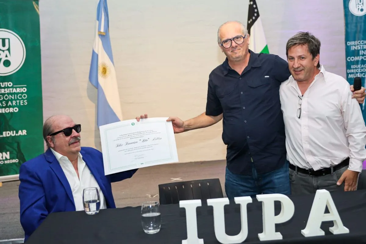 El acto estuvo presidido por el rector del Instituto Universitario Patagónico de las Artes (IUPA), Gerardo Blanes. “Te consideramos un gran maestro y un gran ejemplo de lo que esperamos que sean nuestros estudiantes y artistas. Humildemente, te entregamos nuestra máxima distinción”, dijo con gratitud el rector.