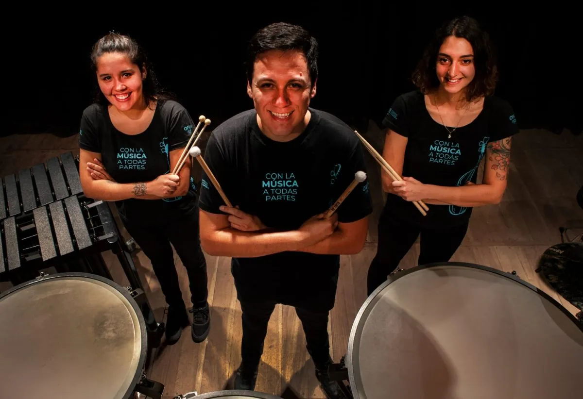 Facundo Catalán, María Antonella Lardani y Carla Jensen conforman el trío de percusión Trepun. (Foto: Gentileza)