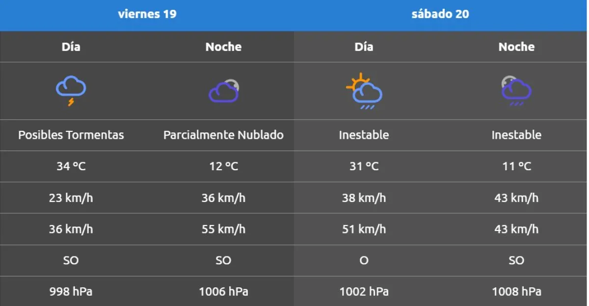 Aunque para el cierre de semana aumentan las temperaturas en la región, desde el viernes se espera que caigan tormentas dispersas que podrían extenderse hasta el sábado por la noche.