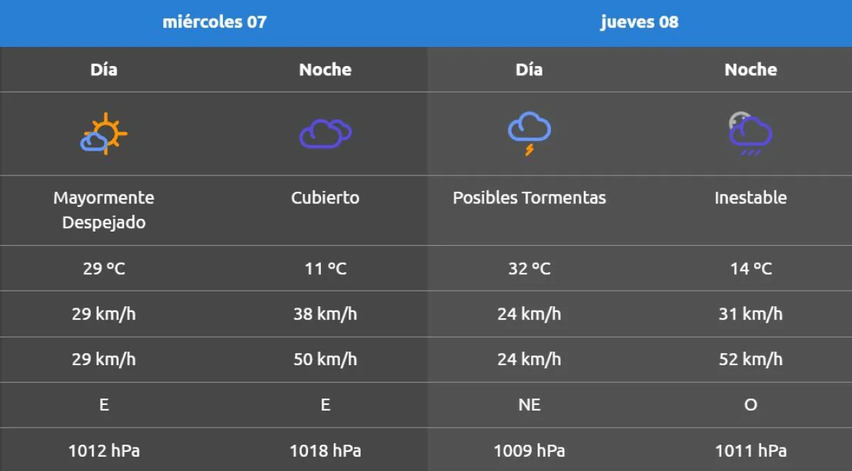 Una jornada agradable y fresca en la región del Alto Valle, con el cielo parcialmente despejado en el día y cubierto por la noche. Se espera que la lluvia y tormenta eléctrica regrese a partir del jueves.