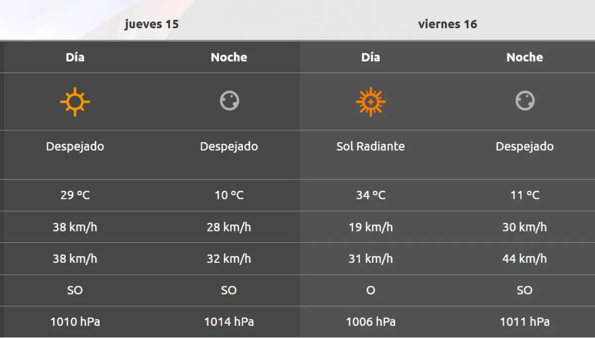 Para este jueves el calor dará tregua y la máxima desciende hasta 10 grados en comparación del miércoles. El tiempo será más agradable, sin presencia de viento e inestabilidad.
