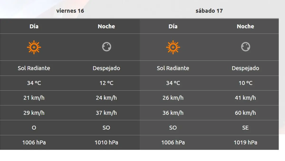 También se espera viento para el sábado y domingo con ráfagas que llegarán a los 68 km/h.