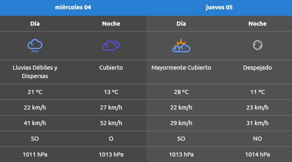 Continúa el descenso de temperatura en la región y tanto el Servicio Meteorológico Nacional como AIC anticipan el aumento de la nubosidad y probabilidad de tormentas aisladas y chaparrones este miércoles.