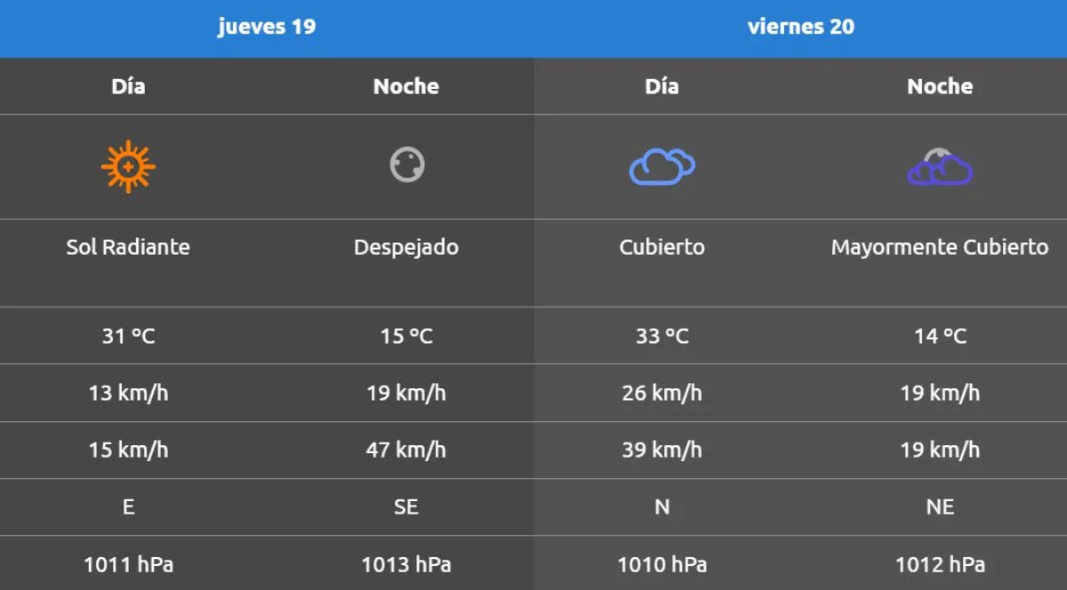 Nos acercamos al fin de semana y las temperaturas empiezan a subir en todo el Alto Valle, alcanzando máximas de entre 31° y 34°, con cielo despejado y algo de inestabilidad, especialmente durante la noche del sábado.