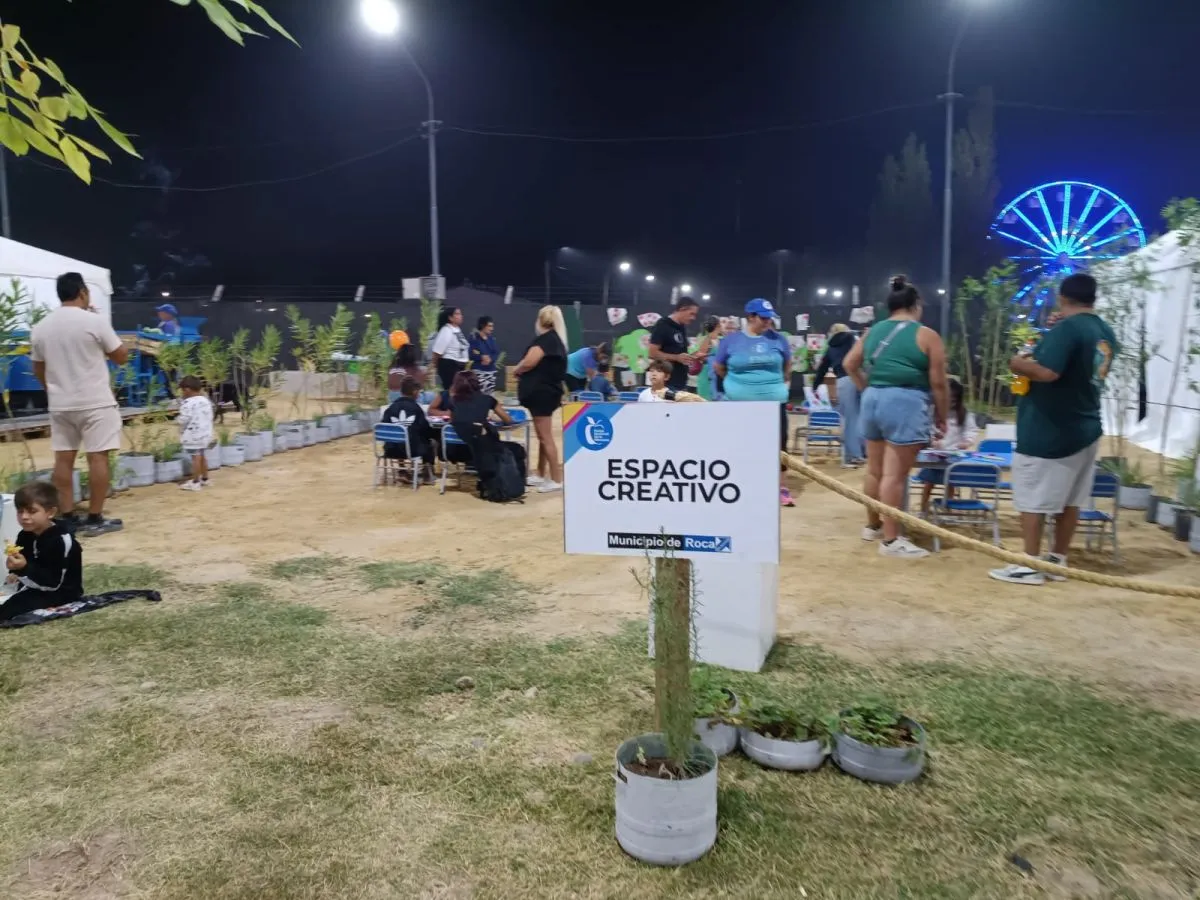 A continuación, se encuentra el Espacio Recreativo también propuesto por el Municipio donde los niños y niñas pueden sentarse a dibujar y pintar. En frente, para los más grandecitos, una de las distribuidora de bebidas de Roca instaló un sector de juegos, donde encontrará el jenga gigante, un metegol y una mesa de ping pong. En este caso es pensado para los chicos y los no tan chicos.