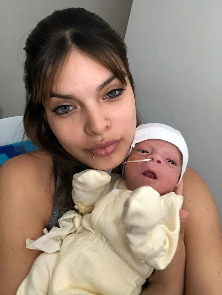 Agostina Ledesma sostiene a su pequeño hijo Eitan luego de haber estado 45 días en el servicio de Neonatología del hospital Francisco López Lima de Roca. Si bien se siente aliviada de tenerlo en casa, tanto ella como su pareja presentaron una denuncia en la Fiscalía por la atención recibida durante el nacimiento, señalando que la habrían dejado sola por un lapso muy extenso de tiempo.