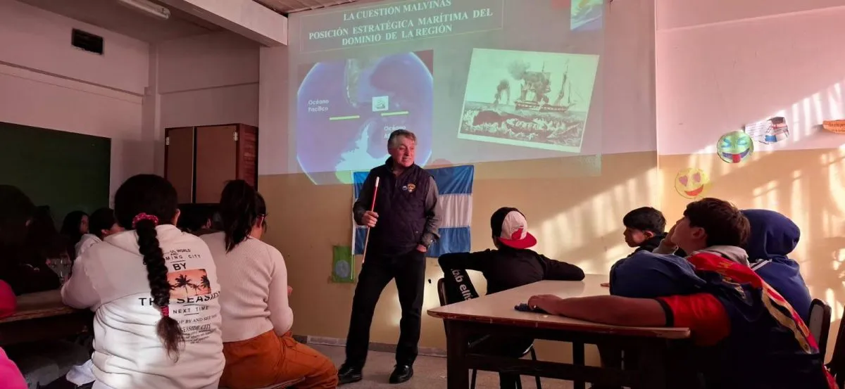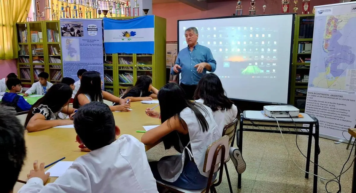En esa línea, detalló que en las aulas se abordan los procesos históricos previos, como la conformación del territorio argentino tras la independencia, la ocupación británica de 1833 y los argumentos geográficos y jurídicos que sostienen la posición argentina a nivel internacional.