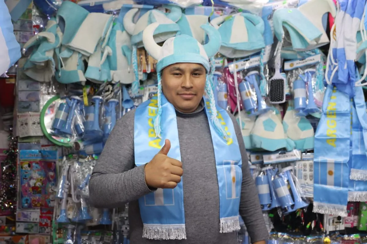 En Tucumán al 150 también hay una regalería donde se exhiben en la vereda banderas grandes y gorros de la selección. El vendedor Russel es peruano pero su pasión por Argentina le puede más.